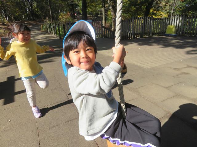 11月12日にこどもたちがずっと楽しみにしていた国営武蔵丘陵森林公園に行ってきました。森林公園に着いて、一番最初に見えてきたのは「げんきもりもり号」という船。その後もピラミッドロープや揺れる吊り橋、ターザンロープ、空中散歩など様々なアスレチックで遊びました!沢山体を動かした後は、お弁当time!愛情たっぷりのお弁当を美味しそうに食べていましたよ♪昼食後はキッズドームとローラー滑り台へ。まだまだ元気ならいおんさんは思う存分に遊びました。保護者の皆様お弁当等の準備ありがとうございました。
