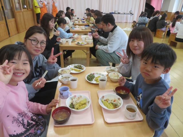 3月3日(火)に触れ合い会食がありました。献立は「さわらのカレーソテー、ピーマンともやしのナムル、かみかみ汁、麦茶」でした。何日も前からお父さん、お母さんと給食を食べることを心待ちにしていた子どもたち。当日はとても嬉しそうに沢山コミュニケーションを取りながら食べていました!保護者の皆様、お忙しい中ご参加いただきありがとうございました!